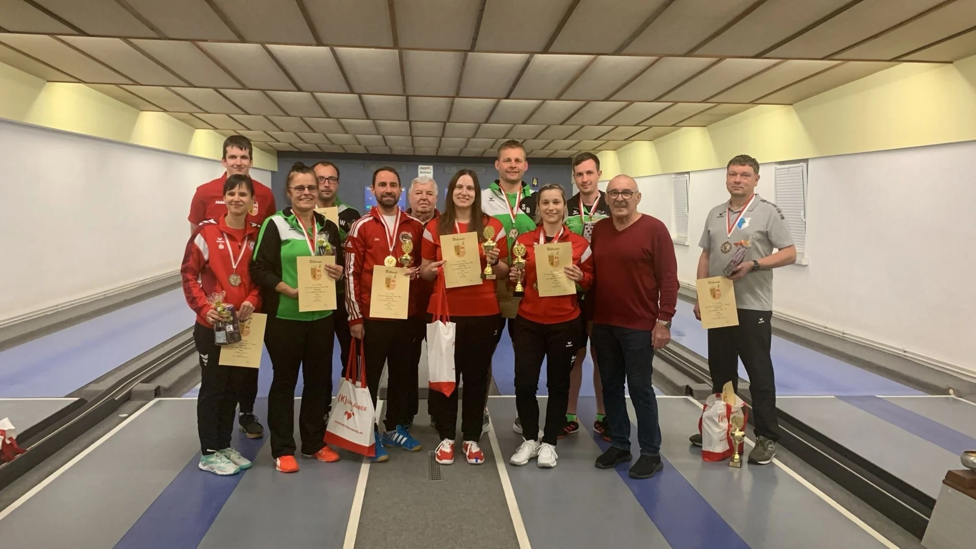 Der KC Rot-Weiss 1902 Bad Liebenwerda lud zur ersten Kreismeisterschaft im Sprint-Kegeln ein. Je zehn Starter in den Kategorien Frauen, Männer und Tandem-Mix gingen an den Start. Bei den Frauen erreichte Vivian Dauer vom ESV Lok Elsterwerda den ersten Platz, bei den Herren ging der Sieg an Rico Wiesner vom SV Frieden Beyern. Im Tandem-Mix ging der Kreismeister-Titel an das Gespann Veronique Lanzke vom ESV Lok Elsterwerda und Jan Hölig vom KC Rot-Weiss Bad Liebenwerda. Das Turnier stand unter Schirmherrschaft des ehrenamtlichen Bürgermeisters von Bad Liebenwerda, Johannes Berger.(tl/pm)