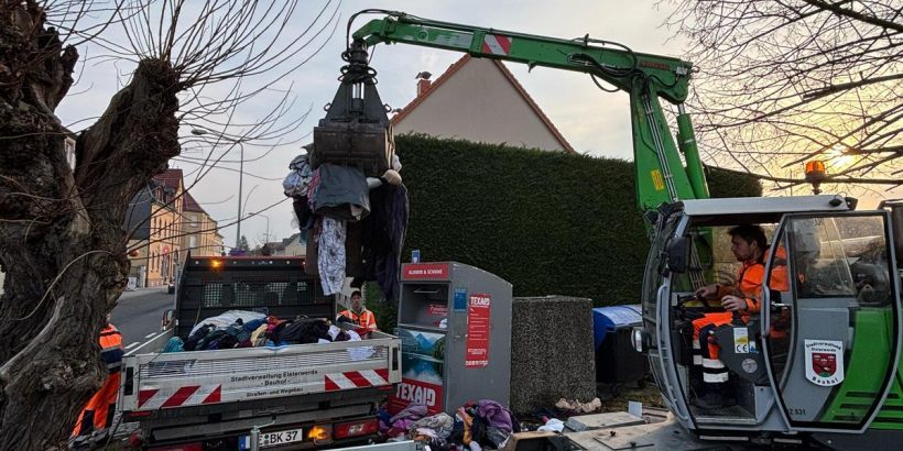 In Elsterwerda hat die Stadt erneut Müll rund um einen Altkleidercontainer beseitigen lassen. Auf einem Grundstück des Unternehmens Sächsisches Wohnen hatte sich über Wochen ein großer Haufen Altkleidermüll angesammelt. Der Betreiber des Containers ist insolvent, deshalb griff die Stadt ein. Unterstützt wurde die Aktion vom Abfallentsorgungsverband und dem städtischen Bauhof, so die Stadtverwaltung.(pm/mp)