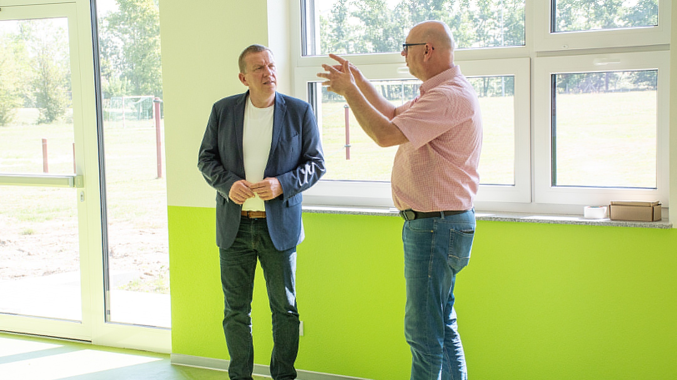 Röderland-Bürgermeister Markus Terne und Elbe-Elster-Landrat Christian Jaschinski trafen sich in Prösen zu einem Arbeitsgespräch über bestehende und zukünftige Projekte in der Gemeinde. Der Erweiterungsneubau der Grundschule in Prösen liegt im Zeitplan, die Fertigstellung soll noch in diesem Jahr erfolgen. In Prösen ist außerdem die Anschaffung eines neuen Feuerwehrfahrzeugs geplant, das mit über 600.000 Euro zu Buche schlägt und die Einsatzfähigkeit der personell sehr gut aufgestellten Wehr weiter erhöhen wird. Mit einem geplanten Solarpark, der Sonnenstrom auf einer Fläche von etwa 34 Fußballfeldern erzeugen soll, setzt die Gemeinde zudem auf nachhaltige Energieversorgung.(tl/pm)