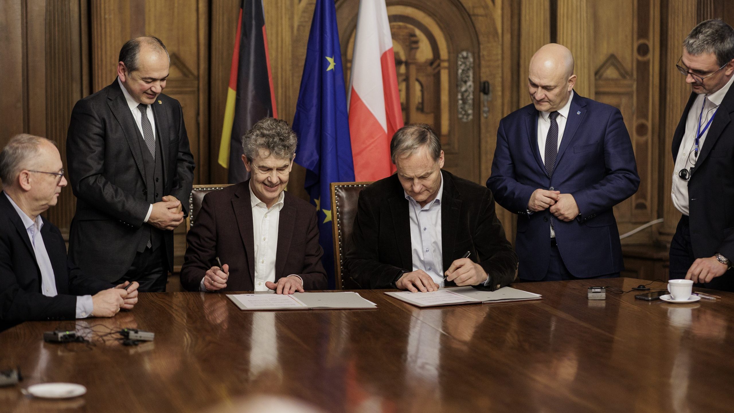 Das grenzüberschreitende Vorhaben UNITED HEAT, eine Kooperation zwischen den Stadtwerken Görlitz (SWG AG) und dem polnischen Wärmeversorger SEC Zgorzelec, gewinnt zunehmend an Dynamik. Der Görlitzer Oberbürgermeister, Octavian Ursu, hat am 2. Dezember hochrangige Vertreter des Projektes in das Görlitzer Rathaus eingeladen, darunter seinen Amtskollegen, Rafal Gronicz, Bürgermeister von Zgorzelec, sowie die Projektpartner von Veolia Deutschland und E.ON Energy Infrastructure Solutions. Dabei wurde eine Absichtserklärung unterzeichnet für die Gründung einer gemeinsamen Gesellschaft. Erneuerbare Energie und Fernwärme über Landesgrenzen hinweg – das ist dabei die gemeinsame Vision der Schwesterstädte Görlitz und Zgorzelec bis 2030.(fk/pm)