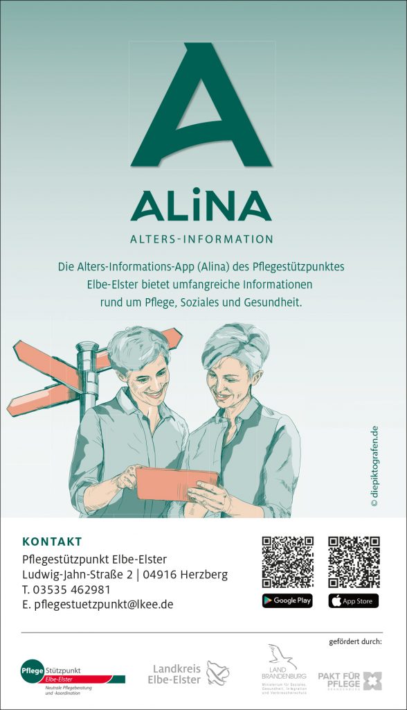 Der Pflegestützpunkt Elbe-Elster weist auf eine Erweiterung der sogenannten Alina-App hin. Die digitale Altersinformations-App des Landkreises bietet ab sofort auch regionale Inhalte für die Landkreise Spree-Neiße, Dahme-Spreewald und die Stadt Cottbus. Damit liefert die App einen noch passgenaueren Überblick über Unterstützungs- und Beratungsangebote zu den Themen Pflege, Soziales, Gesundheit, Wohnen und Teilhabe. Darüber hinaus informiert die kostenlose App über die Netzwerkarbeit in der Pflege.(tl/pm)