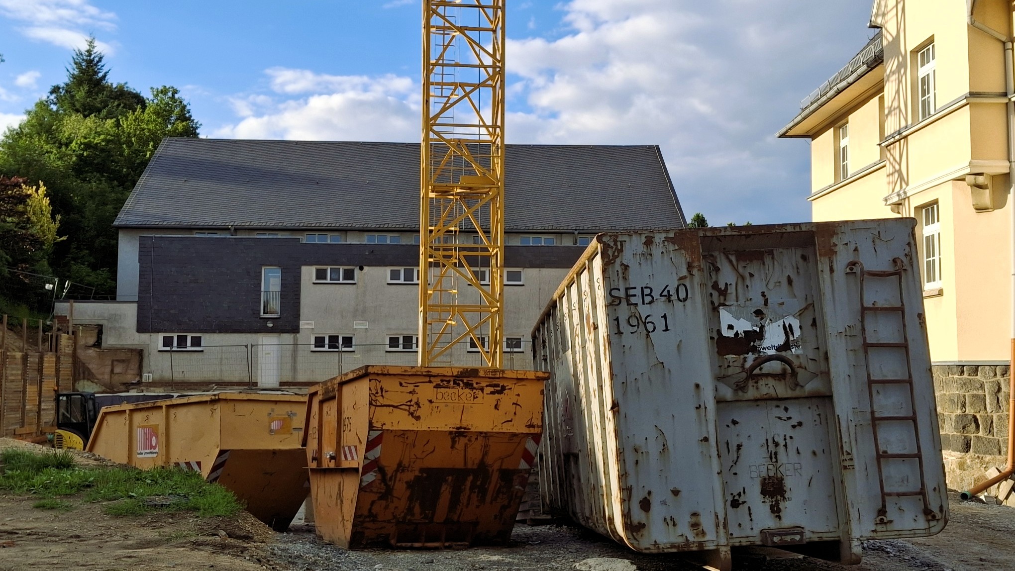 Die Bauarbeiten auf dem Schulkomplex im Schmölln-Putzkauer Ortsteil Putzkau sind in vollem Gange. Der Hortneubau ist bereits zweigeschossig in die Höhe gewachsen. Mit einem Neubau, – angepasst an die Geschosshöhen des Altbaus – gewinnt die bestehende einzügige Grundschule Raum für Unterricht, Verwaltung und die notwendigen Ertüchtigungen im Bereich Barrierefreiheit und Brandschutz, heißt es in einer Projektbeschreibung des Architektenbüros dvos aus Dresden. Und weiter: Mit behutsamen Eingriffen kann die 1913 gebaute und unter Denkmalschutz stehende Schule ertüchtigt werden. Zugänge und Freiflächen erfahren eine Neuordnung, die nördlich zur Haupterschließung angefügte Pausenhalle bietet einen integrativen Akzent.(um)