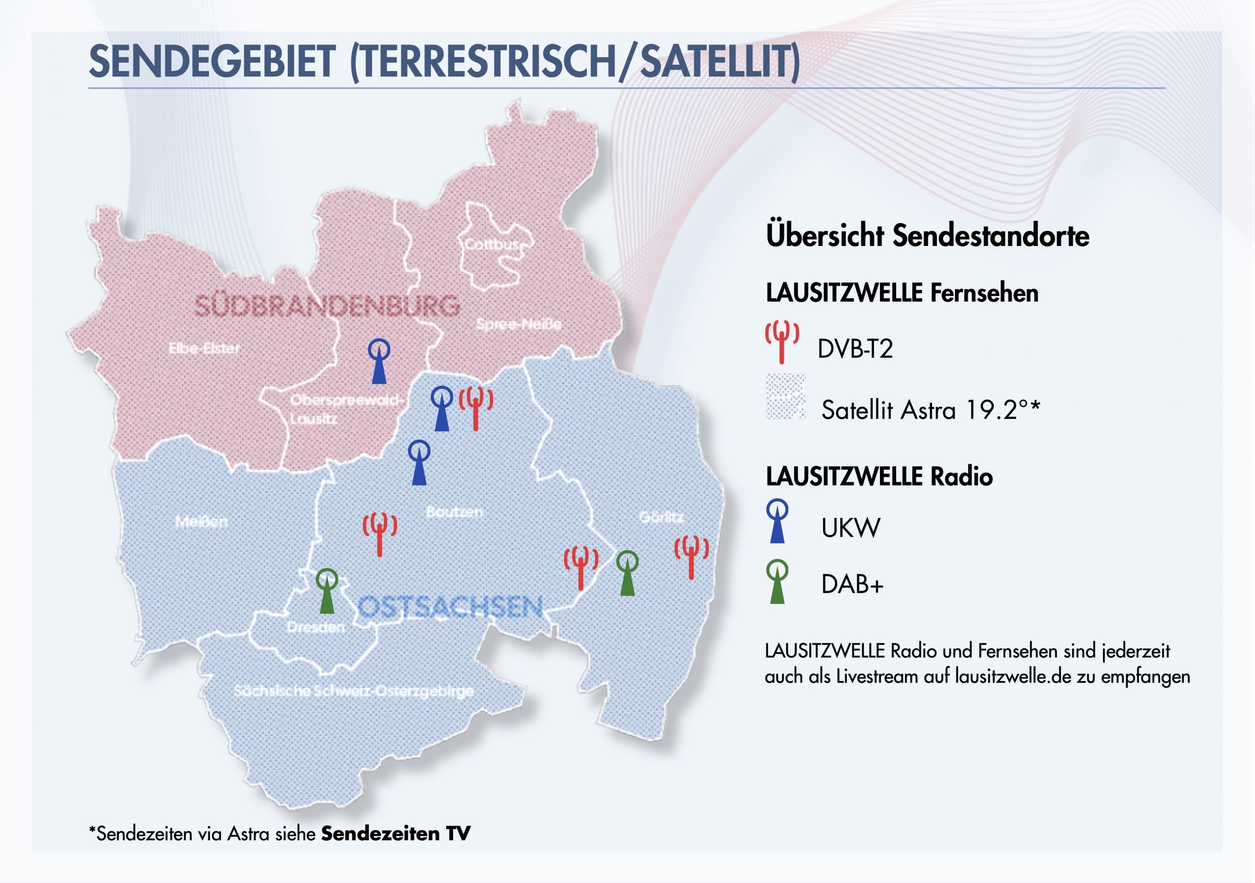 Das LAUSITZWELLE Fernsehen wird in Ostsachen und Südbrandenburg ausgestrahlt.